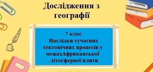Дослідження з географії для 7 класу на тему “Наслідки сучасних тектонічних процесів у межах Африканської літосферної плити” за програмою Запотоцького
