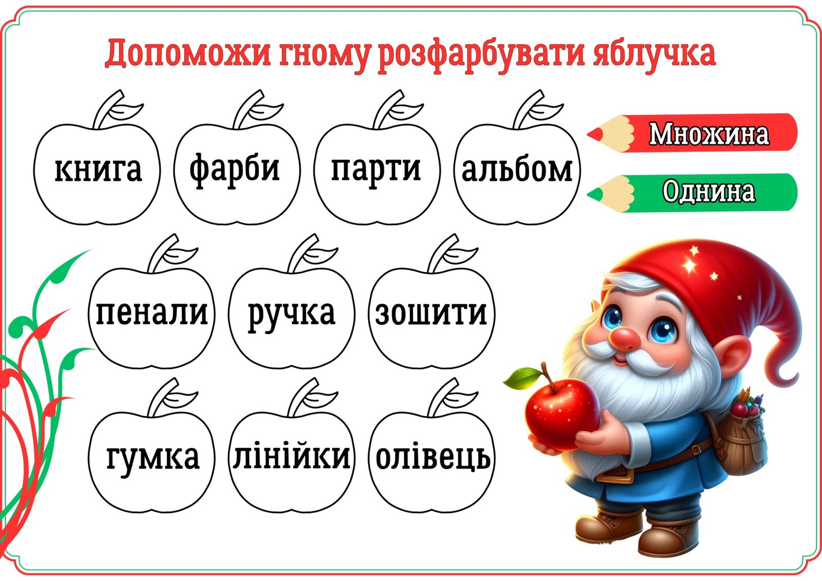 Дидактична гра “Допоможи гному розфарбувати яблучка”