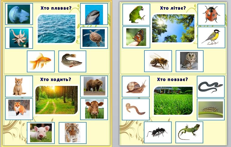Дидактична гра “Хто що робить? Ходить, плаває, повзає, літає.”