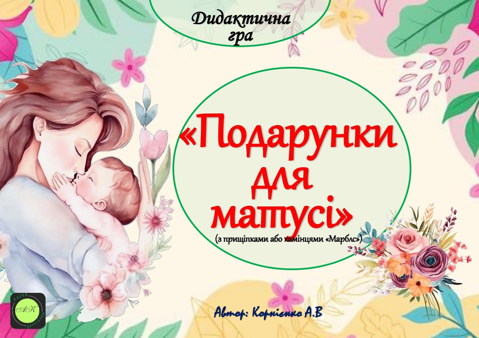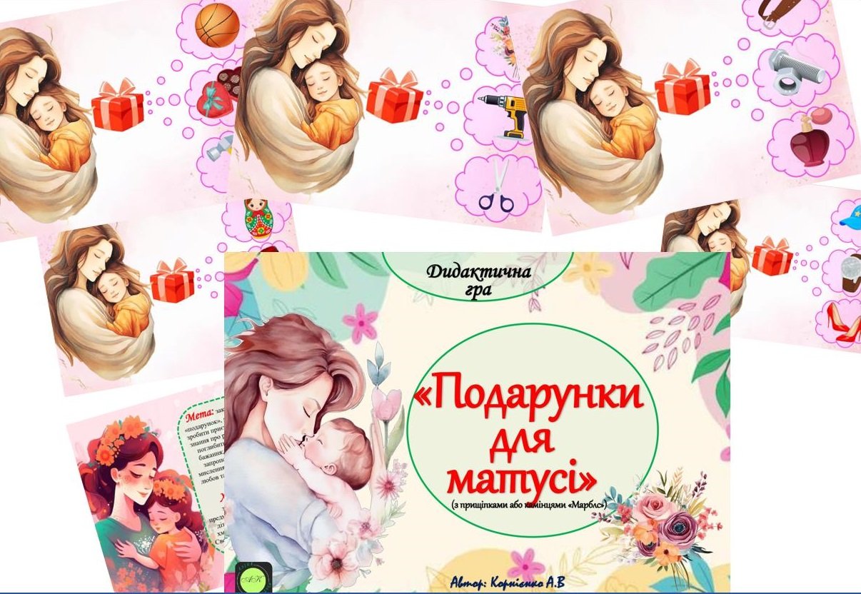 Головне зображення розробки: Дидактична гра “Подарунки для матусі” (з прищіпками або камінцями Марблс)