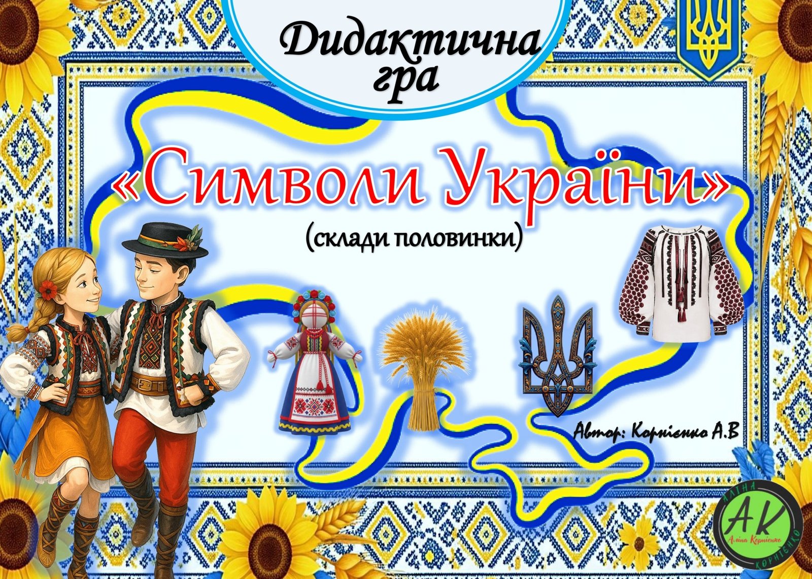 Головне зображення розробки: Дидактична гра 🇺🇦”Символи України”🇺🇦 (склади половинки)