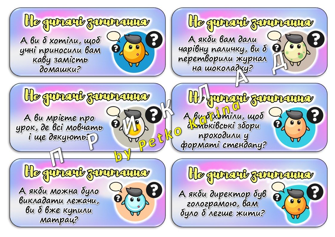Матеріали «Фанти до Дня вчителя: 66 Питань + 66 Відповідей “Не дитячі запитання – не дитячі відповіді”» будуть надіслані в електронному вигляді на вашу поштову скриньку одразу після оплати.