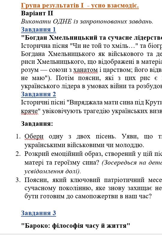 - ГР 1 – ТРИ креативні завдання для усної взаємодії на вибір учителя/ьки або учня/ениці, безпосередньо пов’язані з вивченим розділом та сучасним життям – 2 варіанти;