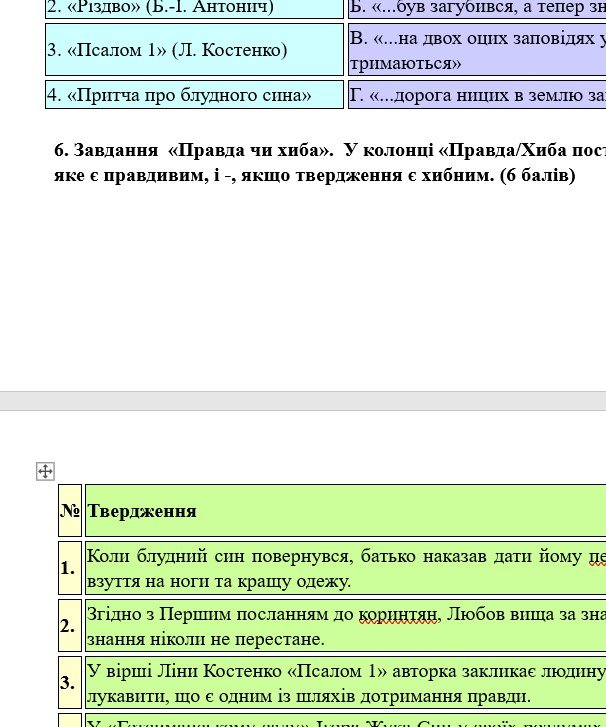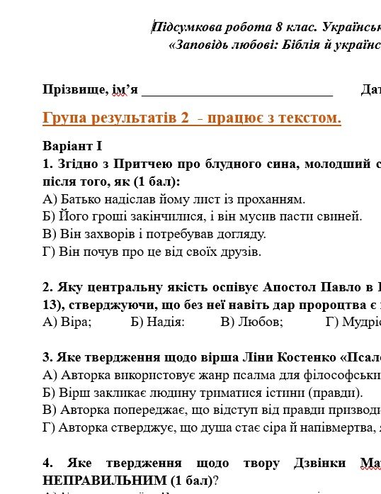 ГР 4. Підсумкова (діагностична) робота 8 кл. Українська літ. “Заповідь любові: Біблія та ук...