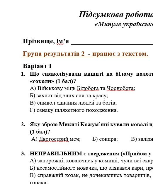 - ПР у форматі word, що дає змогу вчителю/вчительці редагувати роботу під власні потреби.