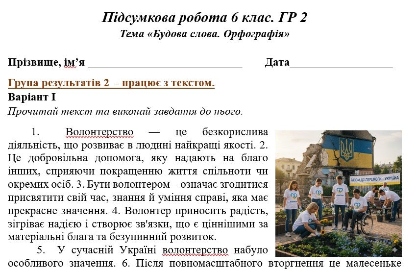 ГР 2. Підсумкова (діагностична) робота. 6 клас. Українська мова. “Словотвір. ОрфографіяR...