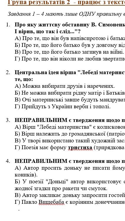 ГР 2. Підсумкова (діагностична) робота з української літератури для 7 класу “Ми – українці” (творчість Василя Симоненка, Павла Вишебаби) (МНП Яценко, підручник Калинич).