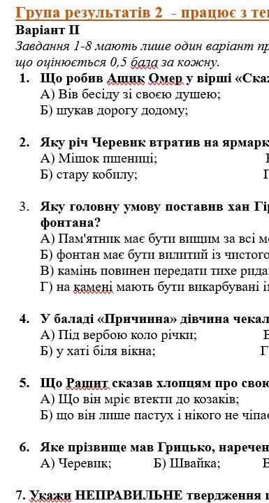 ГР 2. Підсумкова (діагностична) робота з української літератури для 8 класу НУШ “Українці та кримські татари. Романтизм в українській літературі”. МНП Яценко, підручник Яценко