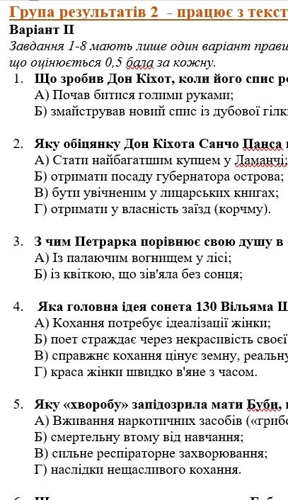 ГР 2. Підсумкова (діагностична) робота із зарубіжної літератури для 8 класу НУШ “Шедеври Ренесансу” , МНП Ніколенко, підручник Ніколенко.
