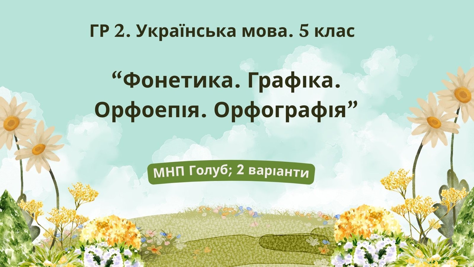ГР 2. Підсумкова (діагностична) робота. Укр. мова. 5 клас. “Фонетика. Графіка. Орфоепія. Орфографія” (МНП Голуб) 2 варіанти