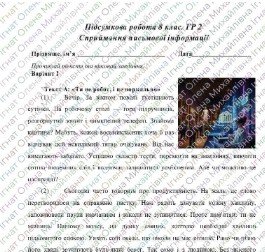 ГР 2. Підсумкова (діагностична) робота з української мови для 8 класу. “Сприймання письмової інформації”.