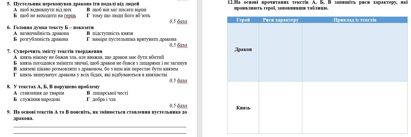 У комплекті є відповіді до завдань 1-12, критерії оцінювання, самооцінювання.