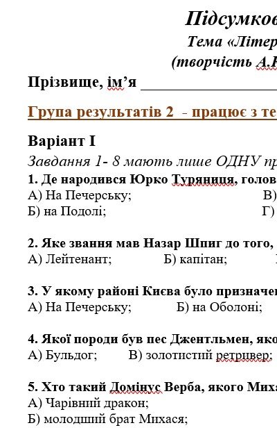 ГР 2. Підсумкова (діагностична) робота з української літератури для 7 класу на тему “Літературний детектив”. Творчість А. Кокотюхи та К. Штанко за підручником Яценко.