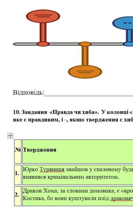 - ГР 2 – тестові завдання за змістом прочитаних творів, завдання на встановлення хронологічної послідовності подій на стрілці часу, завдання “Правда чи хиба” – 2 варіанти.
