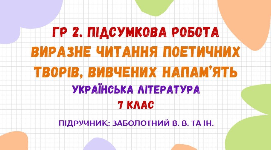 Коли я отримаю матеріал «ГР 2. Підсумкова робота. Виразне читання поетичних творів, вивчених напам’ять. Українська література. 7 клас НУШ (підручник: Заболотний В. В. та ін.)»?