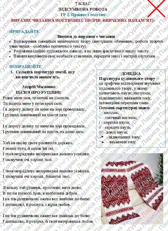 Чи можна замовити матеріал «ГР 2. Підсумкова робота. Виразне читання поетичних творів, вивчених напам’ять. Українська література. 7 клас НУШ (підручник: Заболотний В. В. та ін.)» по телефону, або месенжеру?
