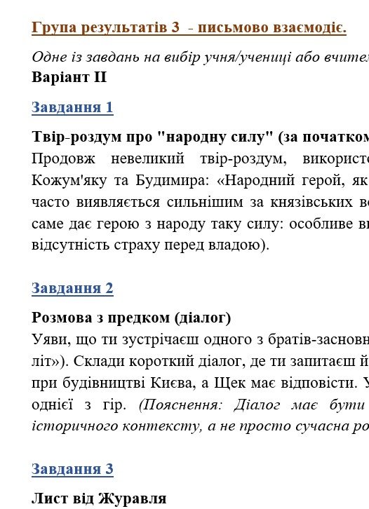 - ГР 3 – ТРИ креативних творчих завдання на вибір учня/учениці (написання різних творчих робіт на тематику прочитаних творів (з поясненням)) – 2 варіанти;;