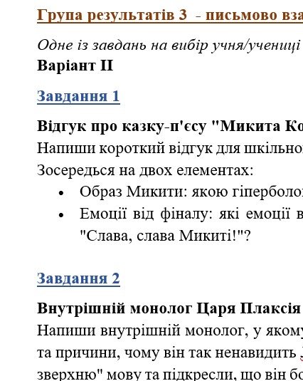 - ГР 3 – ТРИ креативних творчих завдання на вибір учня/учениці (написання різних творчих робіт на тематику прочитаних творів (з поясненням)) – 2 варіанти;;