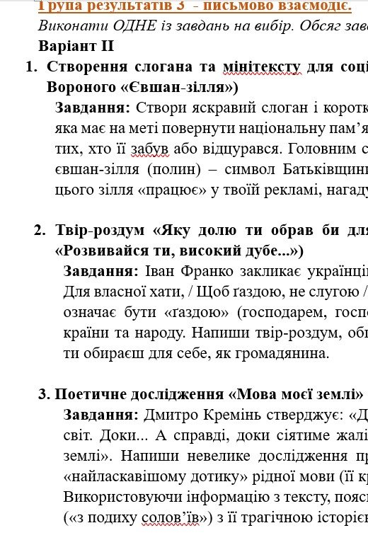 ГР 3 – по ТРИ завдання на вибір учня/учениці (або вчителя/ьки) – написання цікавих і креативних творчих робіт, що тематично пов’язані з вивченим розділом;