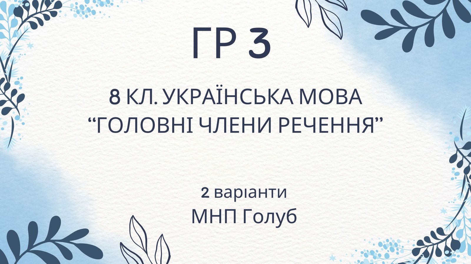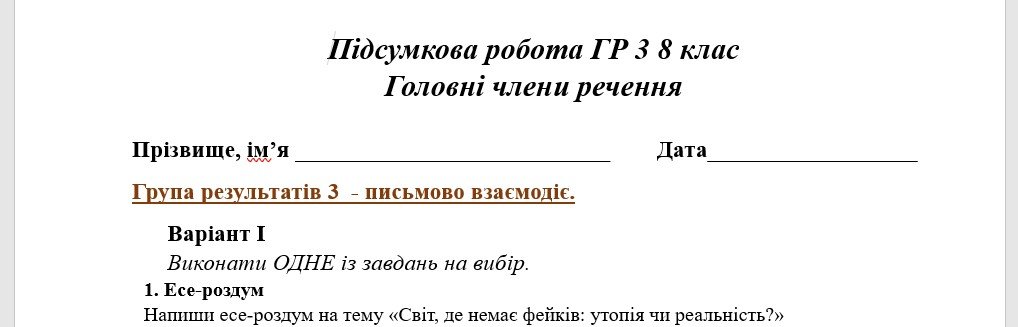 ГР 3. Підсумкова (діагностична) робота 8 клас. Українська мова “Словосполучення. Головні чл...