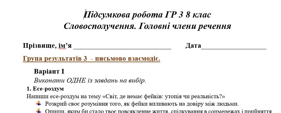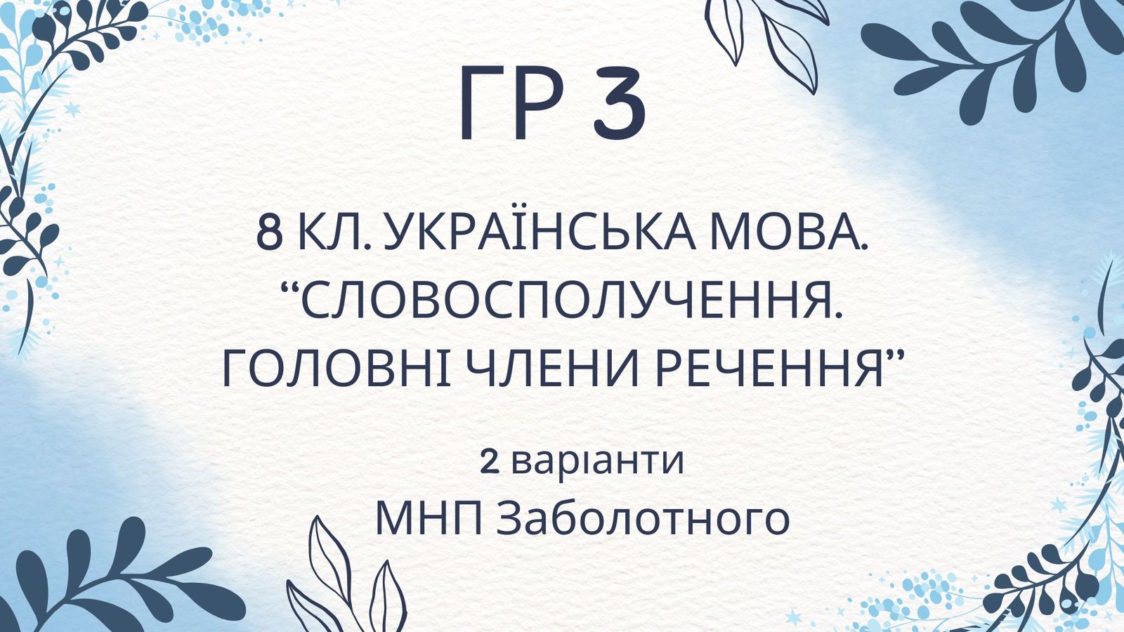 Матеріали «ГР 3. Підсумкова (діагностична) робота 8 клас. Українська мова “Словосполучення. Головні члени речення” (МНП Заболотного)» будуть надіслані в електронному вигляді на вашу поштову скриньку одразу після оплати.