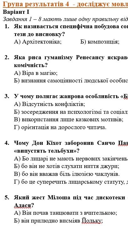 ГР 3. Підсумкова (діагностична) робота із зарубіжної літератури для 8 класу НУШ “Шедеври Ренесансу” , МНП Ніколенко, підручник Ніколенко.