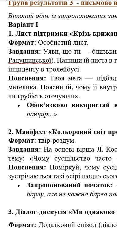 - ГР 3 – ТРИ завдання на вибір УЧНЯ/УЧЕНИЦІ для написання творчих робіт за тематикою прочитаних творів – 2 варіанти;