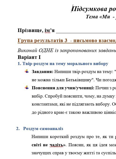 - ПР у форматі word, що дає змогу вчителю/вчительці редагувати роботу під власні потреби.