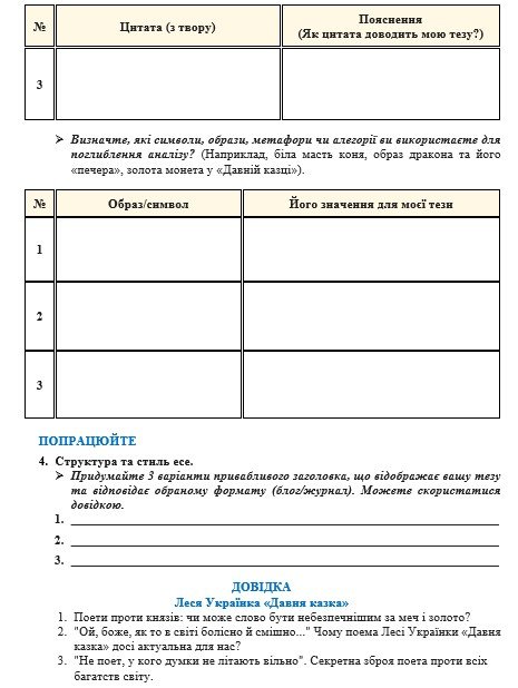 алгоритм написання есе для читацького блогу / літературного журналу;