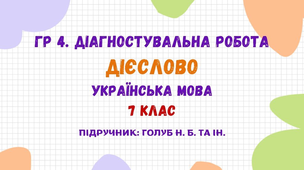 ГР 4. Підсумкова (діагностична) робота 8 клас. Українська мова “Головні члени речення”...