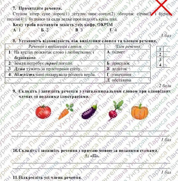 Завдання 1-4, 7 мають по чотири варіанти відповіді, з яких лише один правильний.