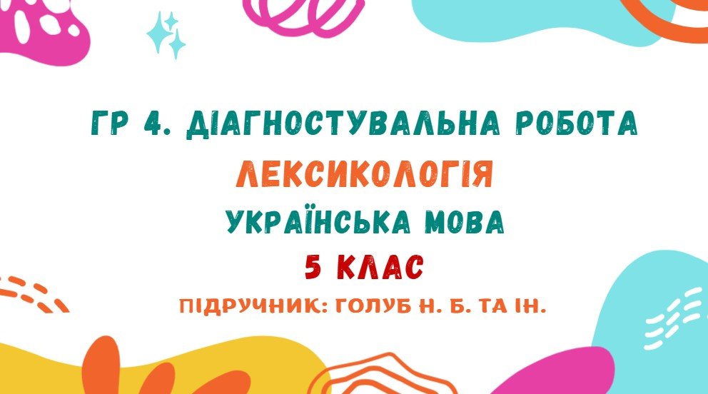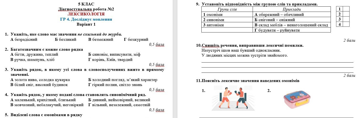 ГР 4. Діагностувальна робота №2. Лексикологія. Українська мова. 5 клас НУШ (підручник: Авраменко ...