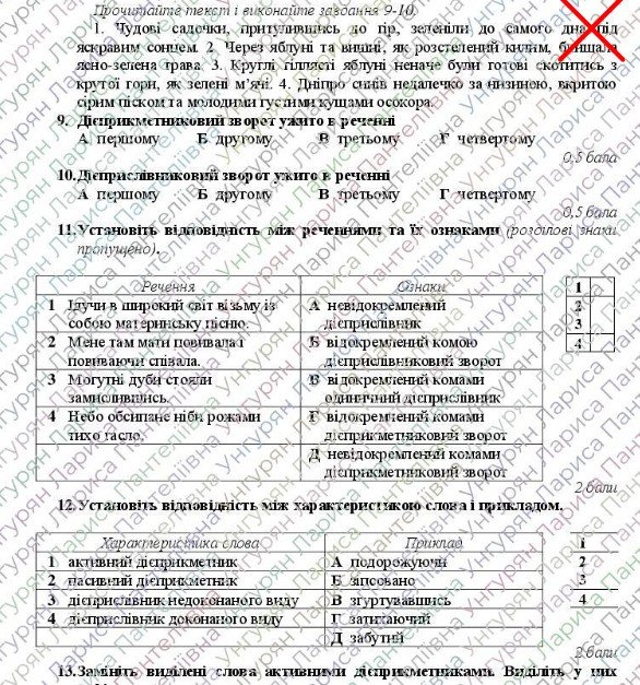 Завдання 9-10 розроблені на основі роботи з текстом: містять по чотири варіанти відповіді, з яких лише один правильний.