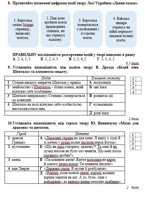 У комплекті є відповіді, критерії оцінювання, самооцінювання.