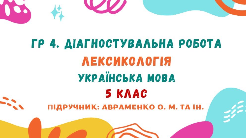 ГР 4. Діагностувальна робота. Лексикологія. Українська мова. 5 клас НУШ (підручники: Заболотний О...