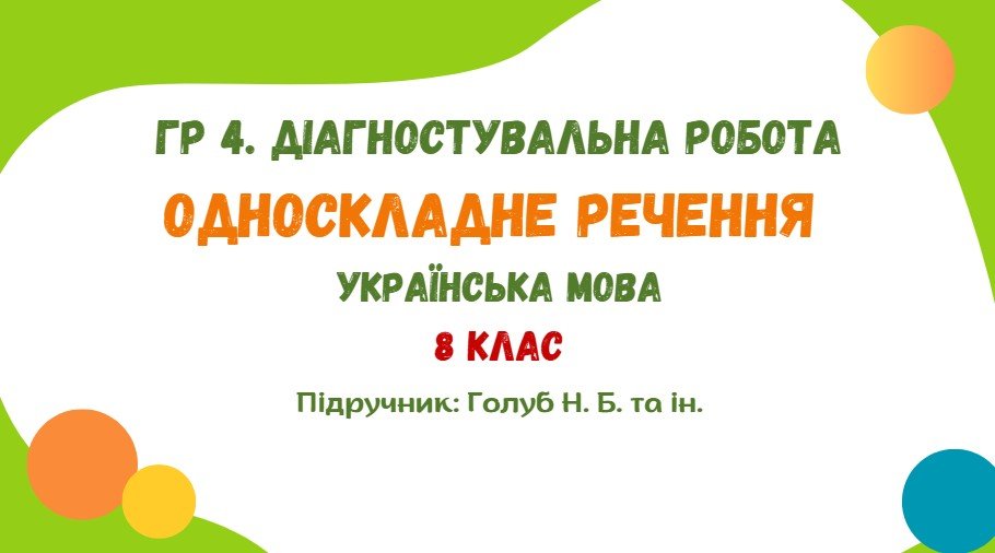 Як купити матеріал «ГР 4. Діагностувальна робота №2. Односкладне речення. Українська мова. 8 клас НУШ (підручник: Голуб Н. Б. та ін.)»?