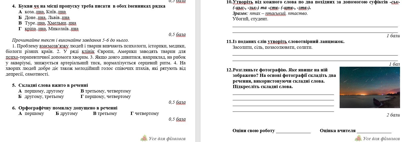 6 клас. Українська мова. Комплексна підсумкова робота «Словотвір» ( підручники Авраменка, Заболот...