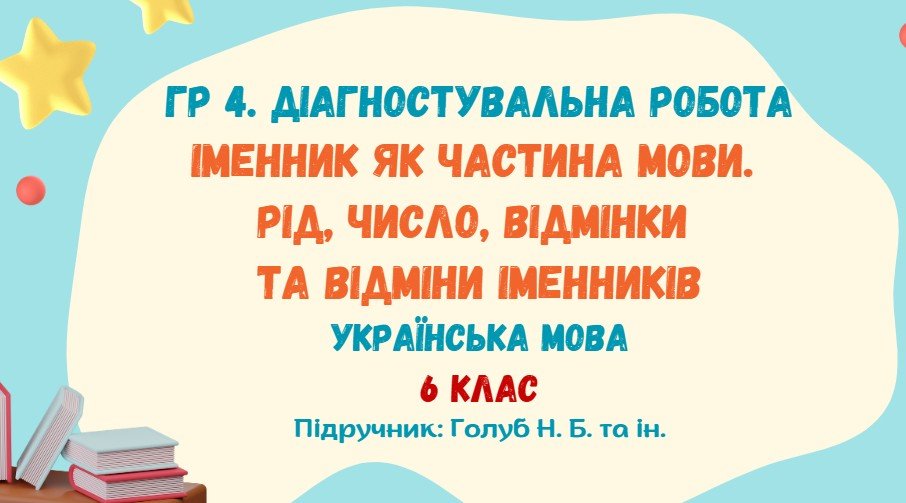 Як купити матеріал «ГР 4. Діагностувальна робота №3. Іменник як частина мови. Рід, число, відмінки та відміни іменників. Українська мова. 6 клас НУШ (Голуб Н. Б.)»?