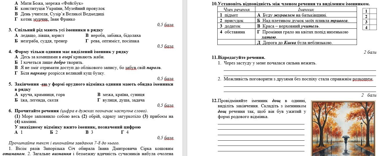 Завдання 7-8 розроблено на основі роботи з текстом: містять по чотири варіанти відповіді, з яких лише один правильний.