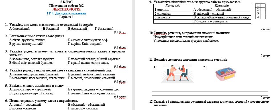 Як купити матеріал «ГР 4. Підсумкова робота №2. Лексикологія. Українська мова. 5 клас НУШ (підручник: Заболотний О. В. та ін.)»?