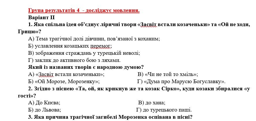 Чи можна замовити матеріал «ГР 4. Підсумкова (діагностична) робота. 8 клас. Українська література. “На струнах кобзи, ліри та бандури” (МНП Заболотного)» по телефону, або месенжеру?