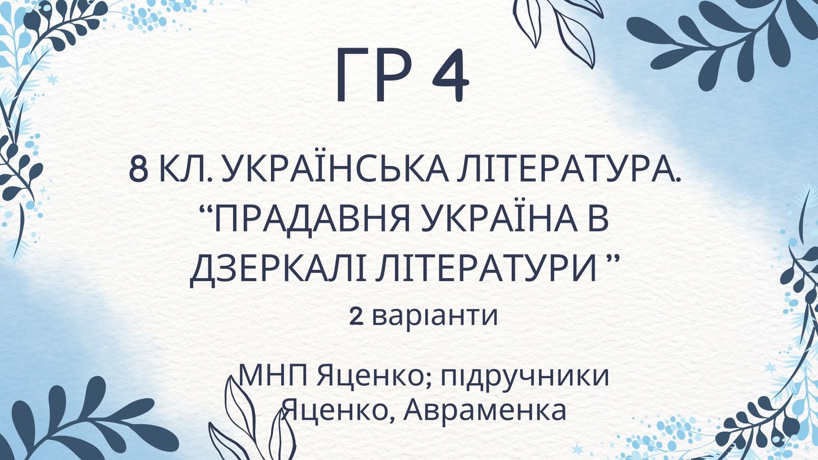 ГР 4. Підсумкова (діагностична) робота. Українська література “Прадавня література в дзеркалі літератури” (МНП Яценко, підручники Яценко, Авраменка)