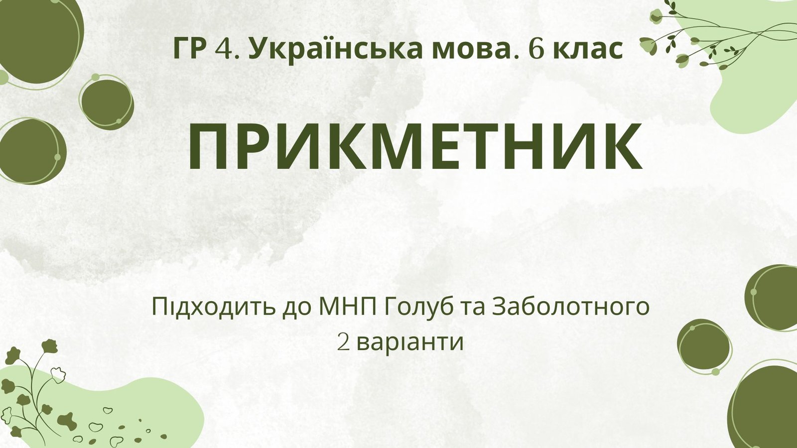 ГР 4. 6 клас. Українська мова. Підсумкова (діагностична) робота з української мови «Прикметник». Підходить до МНП Голуб та Заболотного.