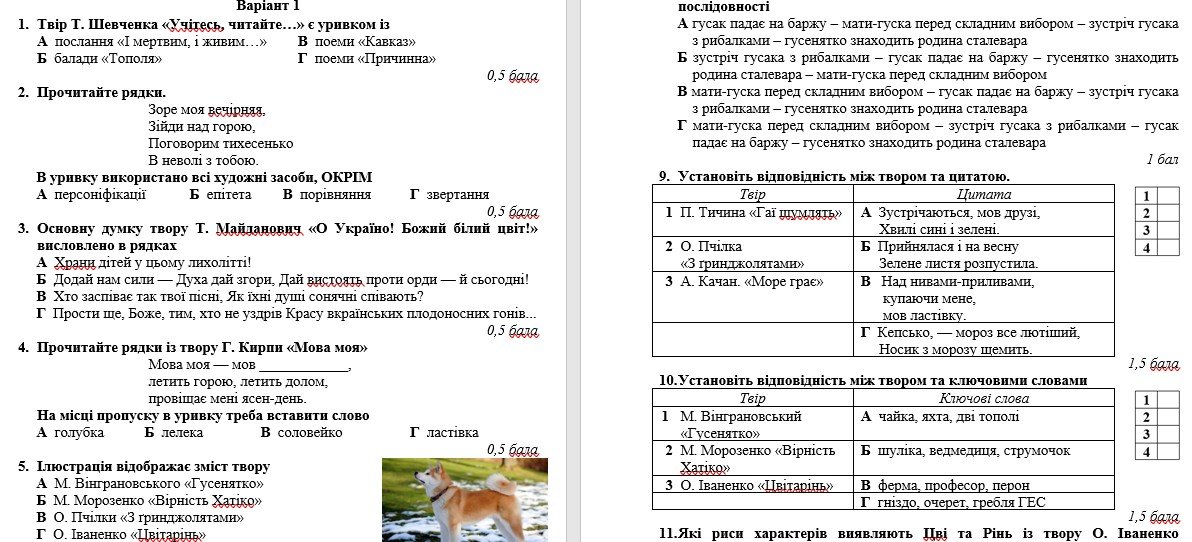 Підсумкова робота відповідає підручнику “Українська література. 5 клас” (автори: Калинич О. В. та ін.).