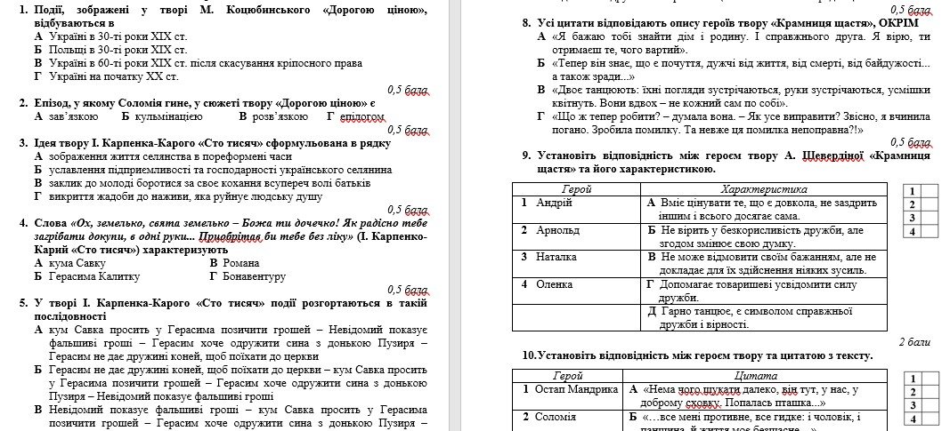 Робота складається з 12-ти різнорівневих тестових завдань у двох варіантах.