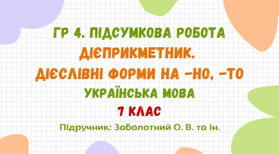 Як купити матеріал «ГР 4. Підсумкова робота №4. Дієприкметник. Безособові форми на -но, -то. 7 клас НУШ (підручник: Заболотний О. В. та ін.)»?