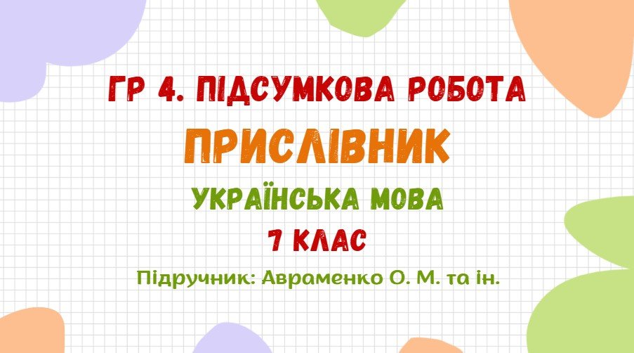 Як купити матеріал «ГР 4. Підсумкова робота №5. Прислівник. Українська мова. 7 клас НУШ (підручник: Авраменко О. М. та ін.)»?
