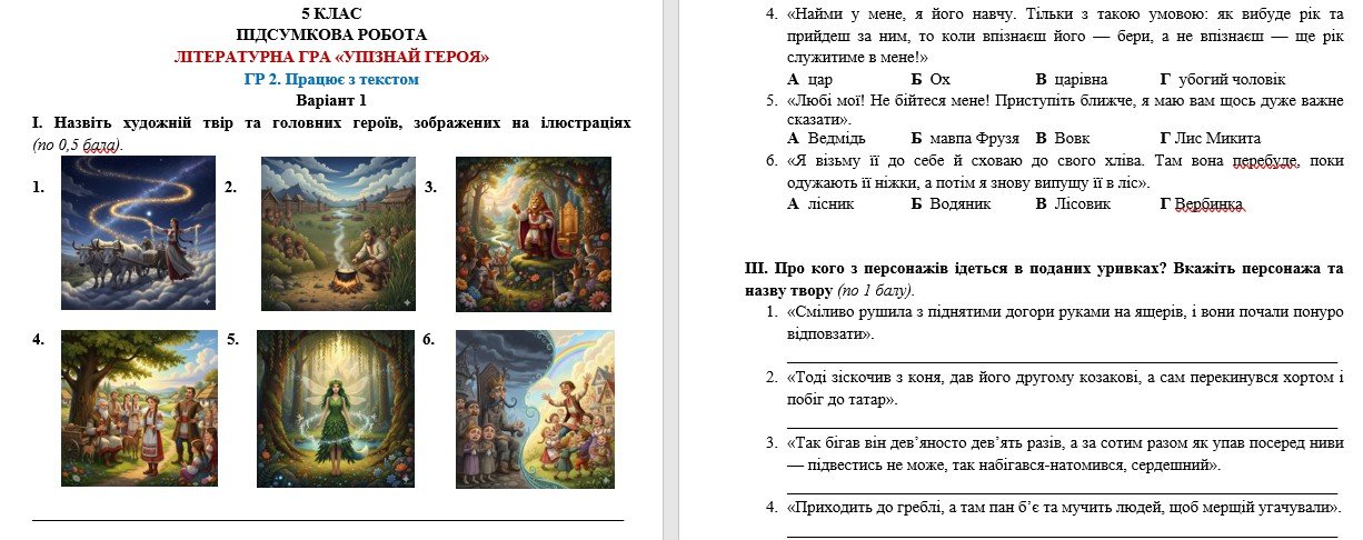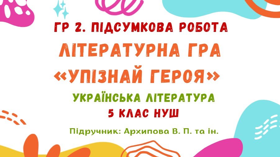 Як купити матеріал «ГР 2. Підсумкова робота. Літературна гра «Упізнай героя». Українська література. 5 клас НУШ (підручник: Архипова В. П. та ін.)»?