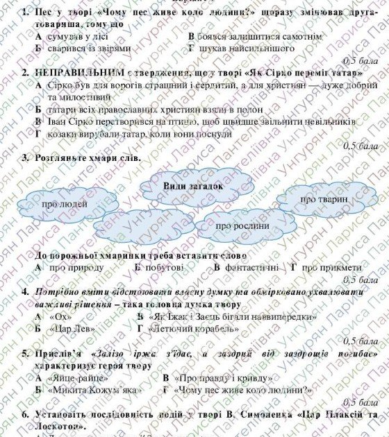 Підсумкова робота відповідає підручнику “Українська література. 5 клас” (автори: Архипова В. П. та ін.).