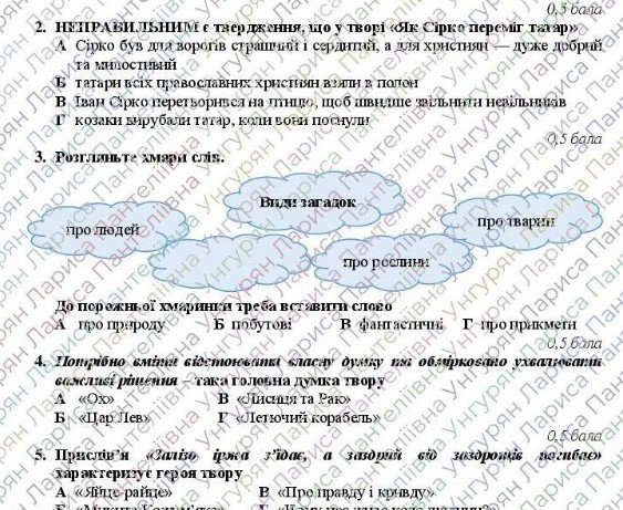 Підсумкова робота відповідає підручнику “Українська література. 5 клас” (автори: Заболотний В. В. та ін.).